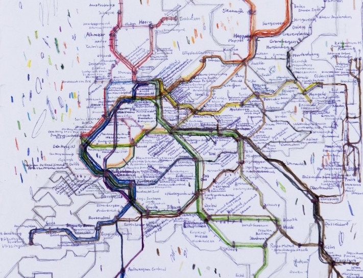 Al die tijd draagt hij het werk mee om er op elk onbewaakt moment nog even aan te kunnen werken. Als de tekening voltooid is, heeft hij de route ook in zijn hoofd. Zo krijgt hij langzaam maar zeker het hele transportstelsel onder de knie.'