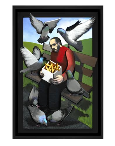 FEEDING TIME 2014, mixed media on board, (wooden frame glazed with UV protective,