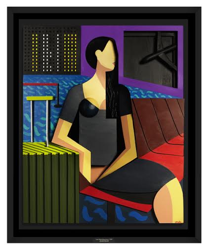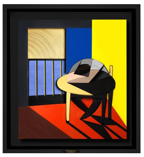 LATE NIGHT DEPARTURES 2015, mixed media on board, (wooden frame glazed with UV protective, non reflective perspex), 90 x 108 x 13.5 cm